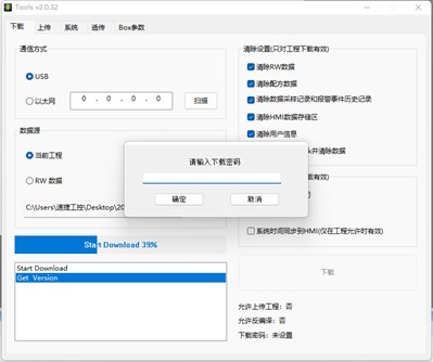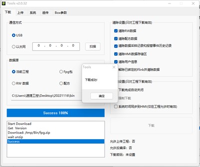 3、選擇工程下載方式,USB 或者網(wǎng)絡,確認下載,如果提示“通訊失敗”,請檢查下載線連接是否 正常(USB 線或者網(wǎng)線),如果提示“啟動下位機失敗”,可以先斷電,讓 HMI 重啟,再次嘗試。(百度一下速捷工控)